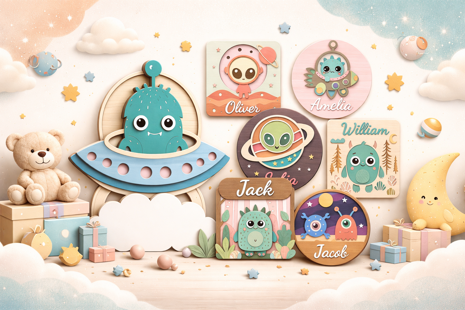 Personalized Baby Name Sign – Custom Bear Nursery Wall Decor